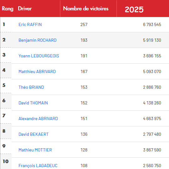 CLASSEMENT DES MEILLEURS DRIVERS SAISON 2025
